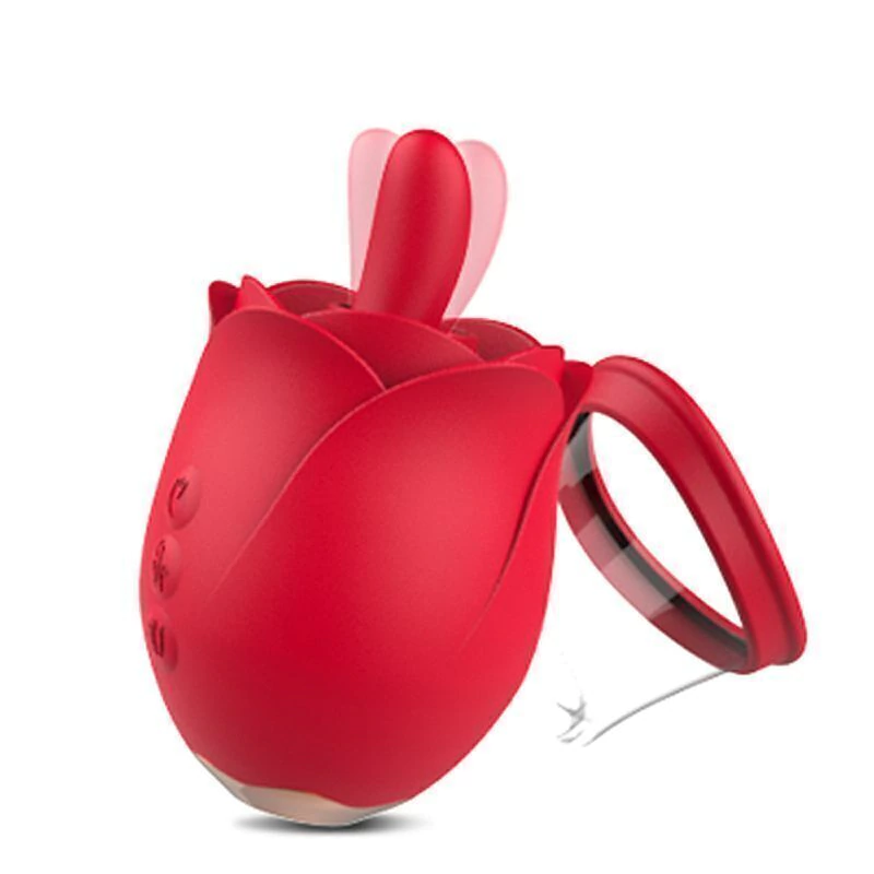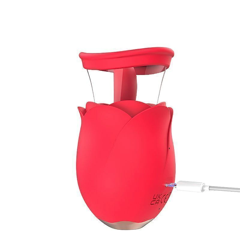 Vibrador de clitóris em formato de rosa - Possui 4 Modos de sucção, 9 modos de estimulação de língua e 9 modos de vibração.